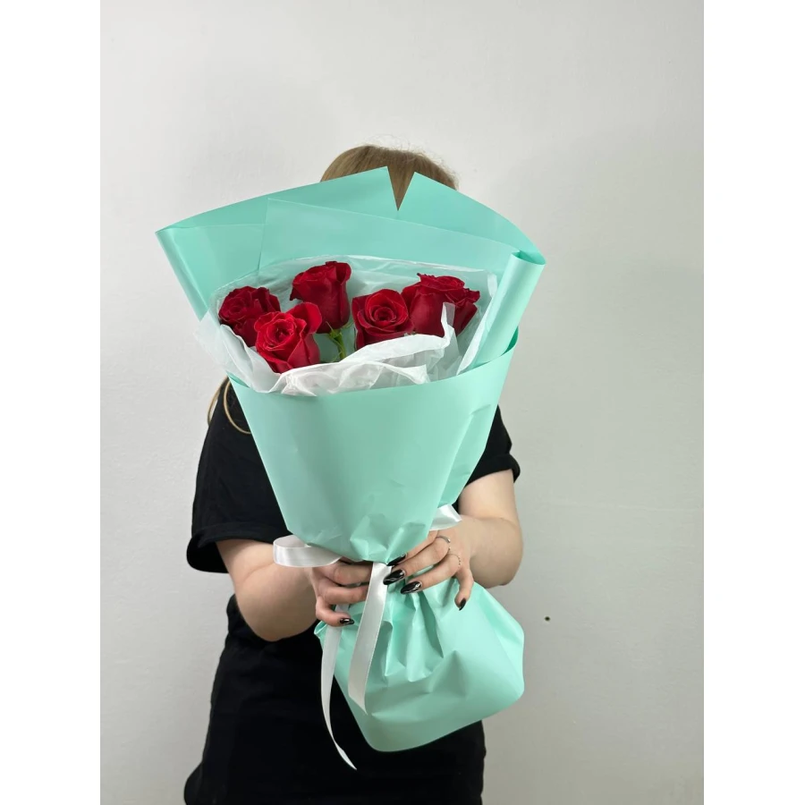 Прекрасный букет из 5 красных роз можно купить в Форт-Шевченко и Мангистауской области за 6000 тенге с быстрой бесплатной доставкой в магазине букетов «Ultra Flowers»: